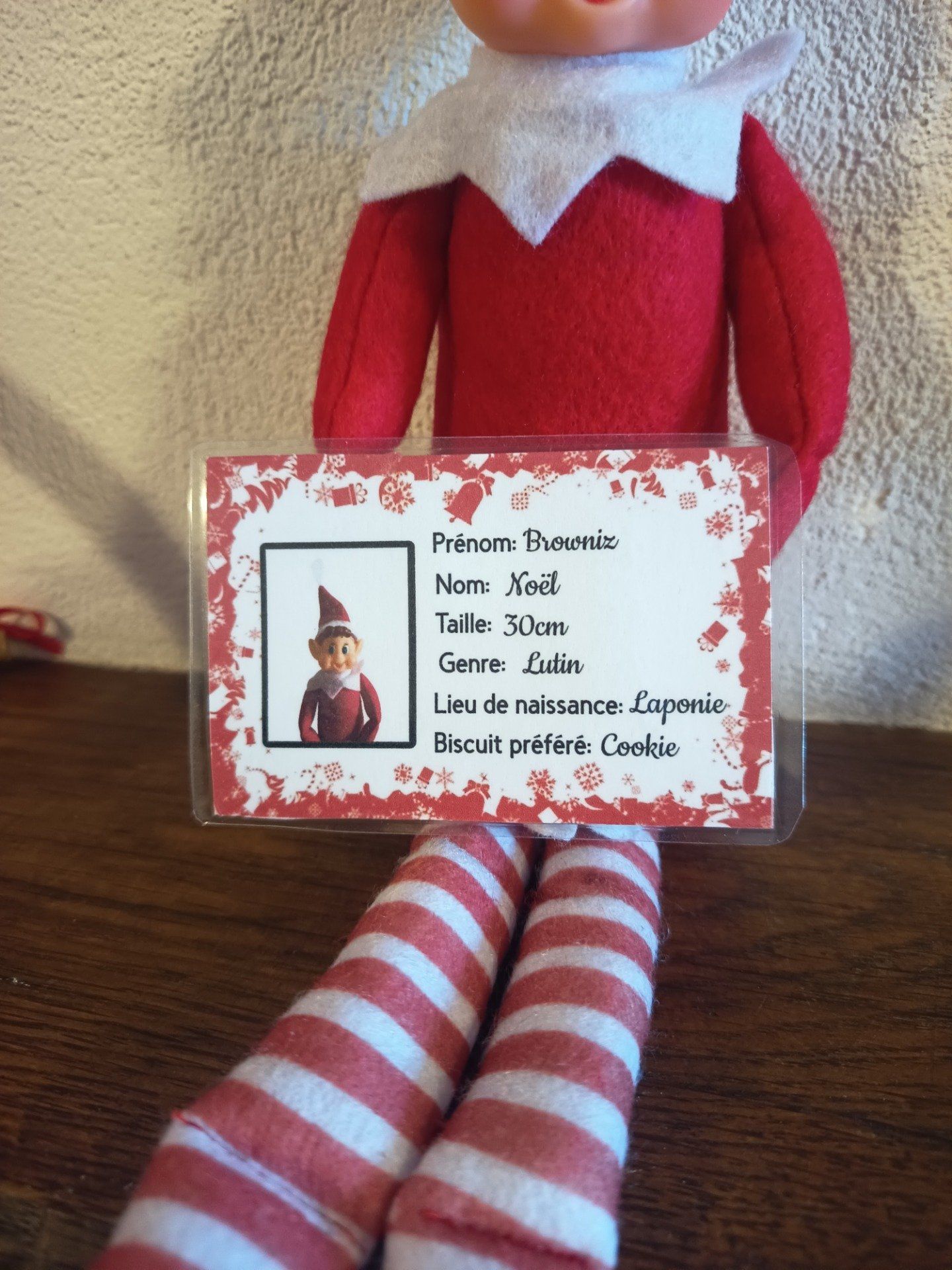 Avec le prénom de votre lutin, nom Noël, son sexe, sa taille, lieu de naissance Laponie et son biscuit préféré 😉