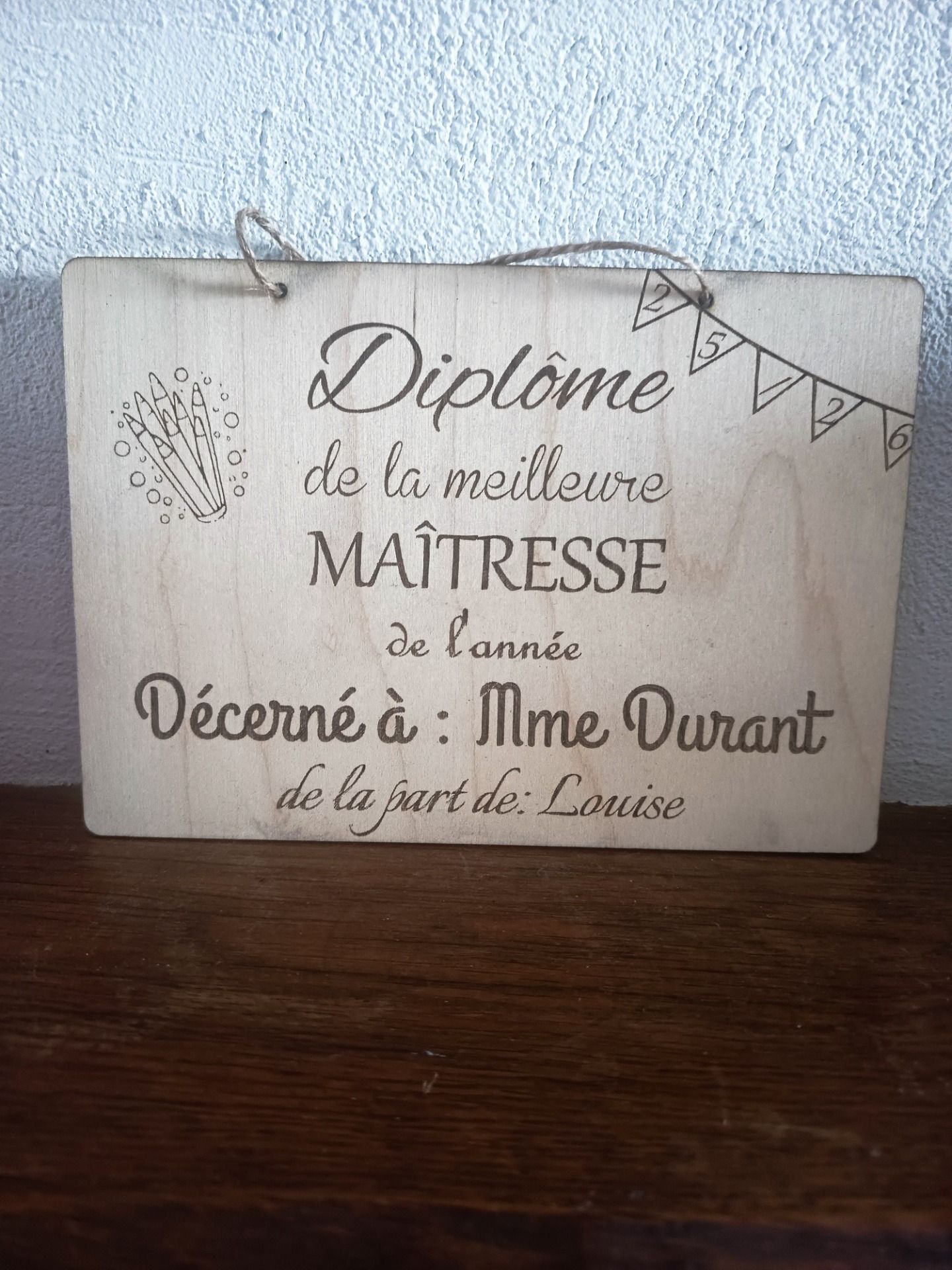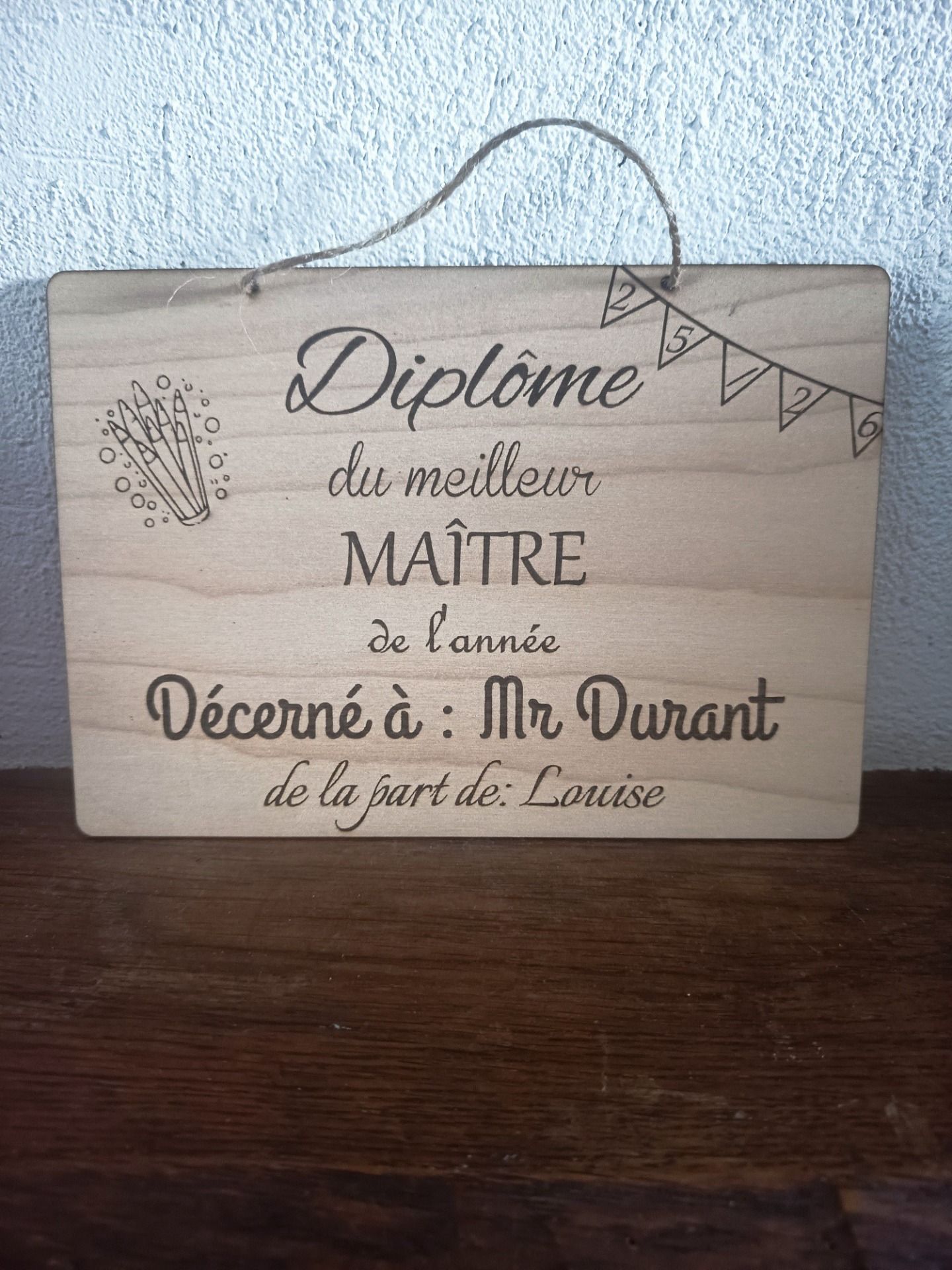 Beau diplôme en bois personnalisé prét à offrir